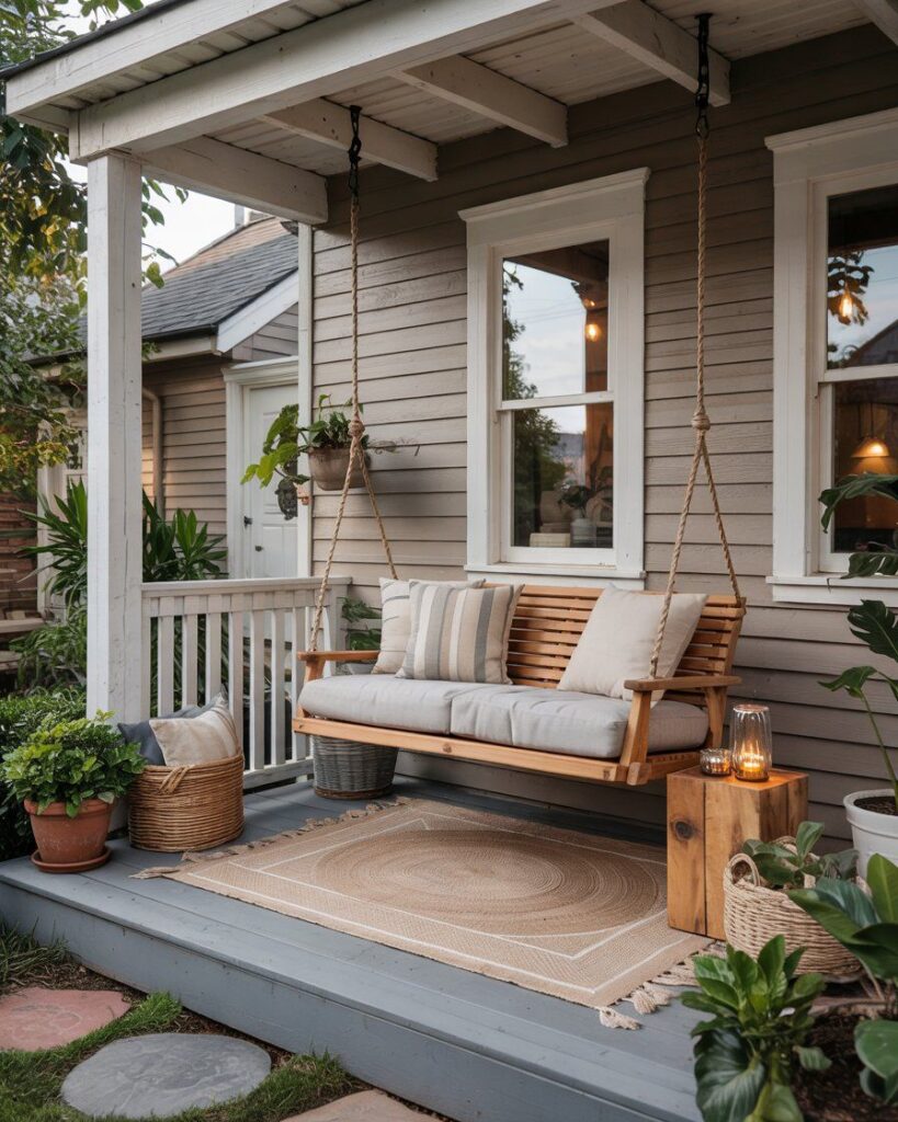 Adding a lantern or small table nearby keeps the area functional without disrupting the relaxed feel.