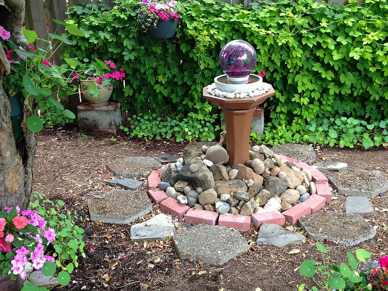 A gazing ball fountain is a striking water feature that combines elegance with a bit of whimsy. This DIY fountain uses a shiny glass or metal ball as the focal point, with water flowing from the top and down the surface of the ball. The reflective surface of the gazing ball creates a magical effect, especially when sunlight or moonlight bounces off it.