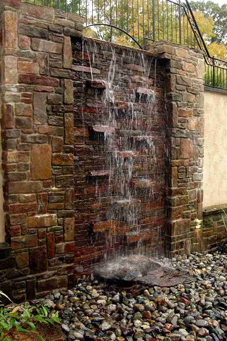 If you’re working with a smaller space or want to maximize your vertical space, a wall-mounted vertical fountain is a fantastic option. This design involves mounting a fountain to a wall, creating an attractive feature without taking up valuable ground space. Ideal for back porches or smaller outdoor areas, it combines functionality with style.
