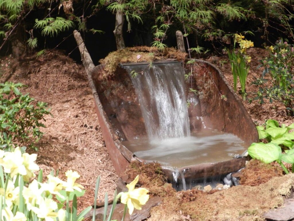This wheelbarrow fountain adds a playful touch to your garden, especially when paired with vintage garden tools, flowers, and greenery. It’s a great way to add personality and charm to your outdoor space while enjoying the calming effect of water.