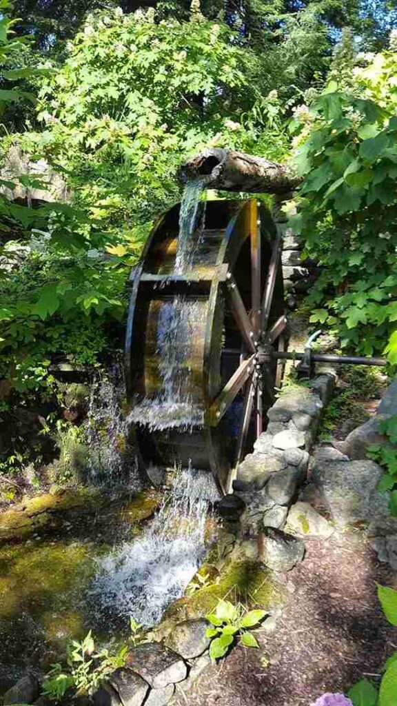 Start by securing the wheel in an upright position, either standing on its own or mounted on a post. You can then attach a pump to the center of the wheel, with water flowing from the hub and over the spokes. Adding plants, flowers, or vines around the wheel will further enhance its rustic look.