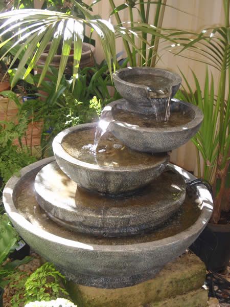 To create this fountain, stack several terracotta pots of varying sizes, with the largest pot at the base. The pump is placed inside the bottom pot, and the water flows up through the other pots, creating a tiered effect. You can decorate the pots with paint, natural finishes, or plant life to add personality and charm.