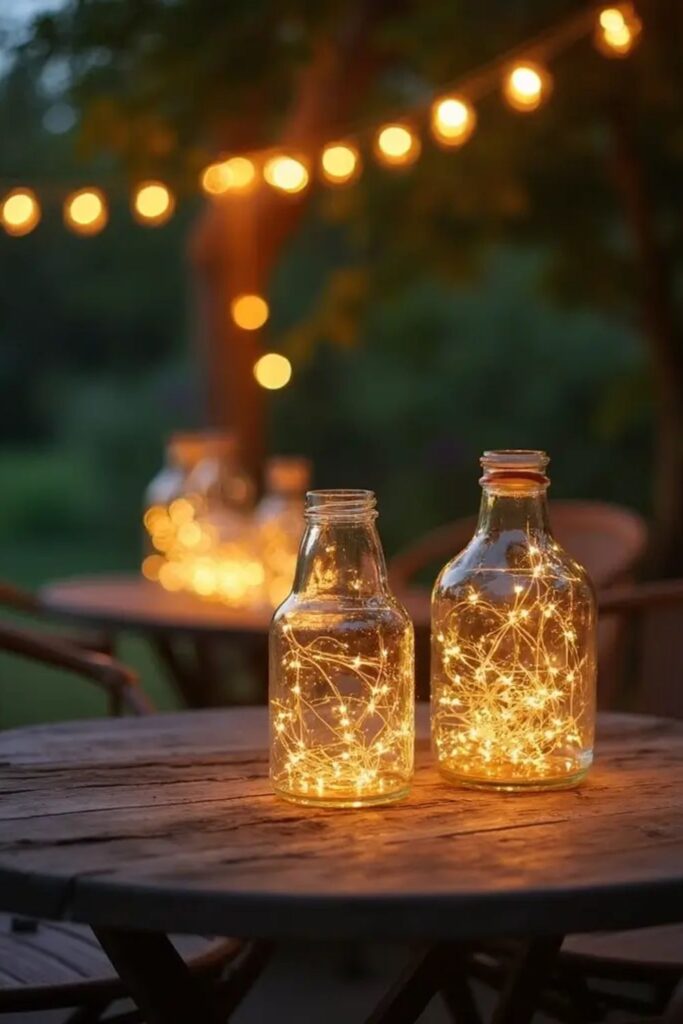 If you want to add a bit of sparkle to your fountain, a glass jar and string light fountain is the perfect DIY project. This combination of a simple glass jar with hidden string lights can create an enchanting, luminous effect in your outdoor area.