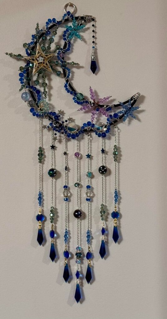 This is the kind of piece that makes a room feel softer. It’s part sun catcher, part wall art, and it looks especially good in a bedroom where you want calm energy.
