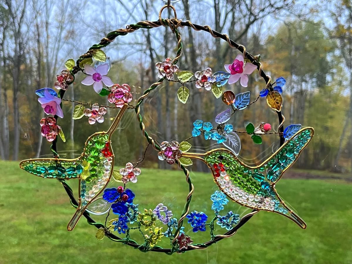 I didn’t expect this one to feel so joyful, but it does. A hummingbird shape in the window just looks like it belongs there, especially when the beads shimmer like tiny wings.