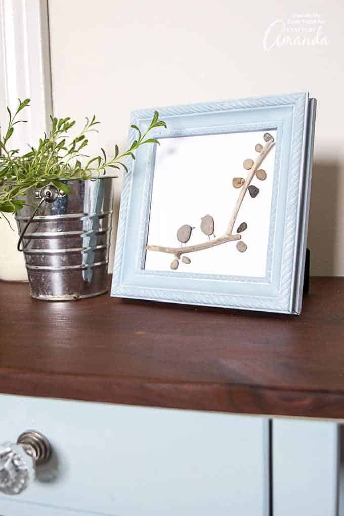 Framed Pebble Bird Art
