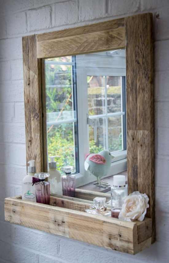 Rustic Pallet Mirror Shelf