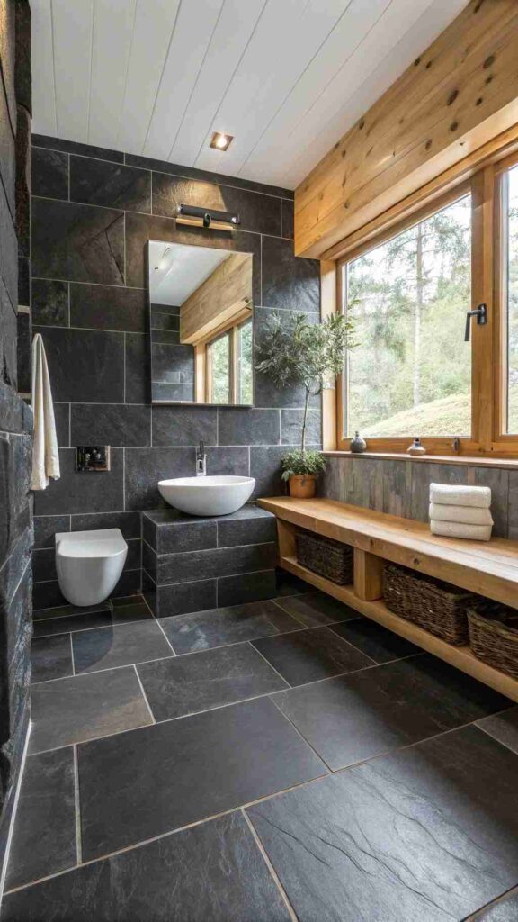 - Floor: stone-look porcelain with variation