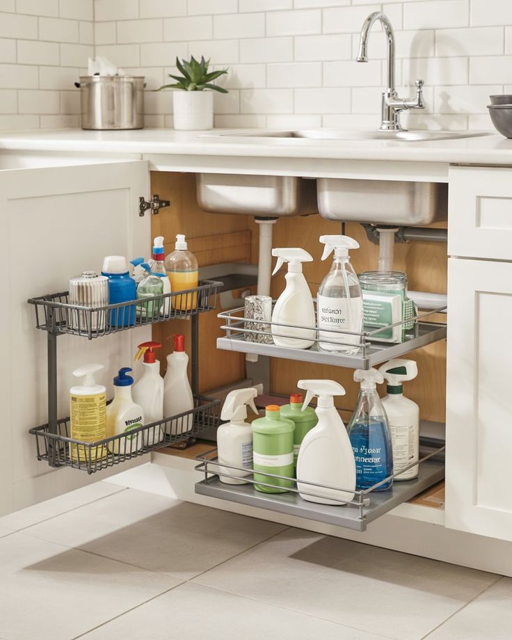 The space under the sink has a habit of turning into a messy storage black hole. Organizing it makes your whole kitchen feel cleaner because you stop shoving bottles in there and hoping for the best.