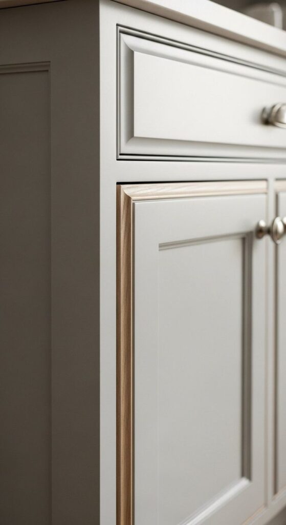 - Putty or warm greige cabinets
