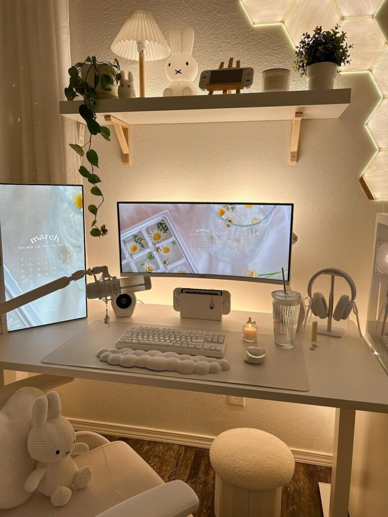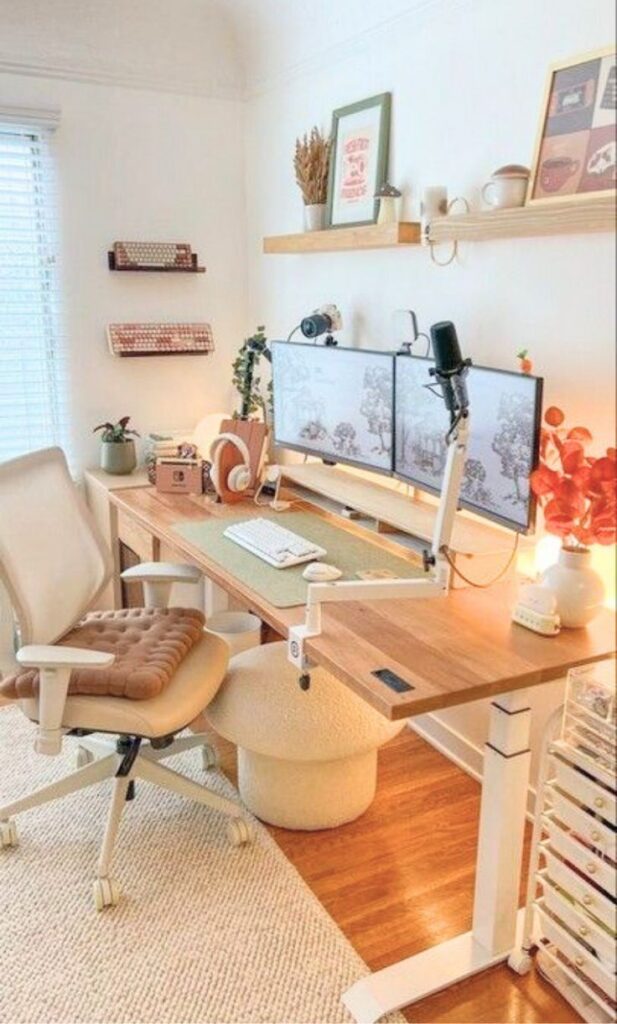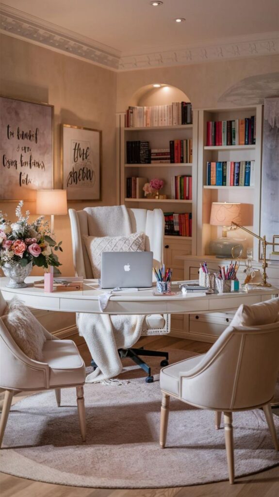 This is where office decor for women really shines, because softness makes the space feel like a place you want to spend time in.