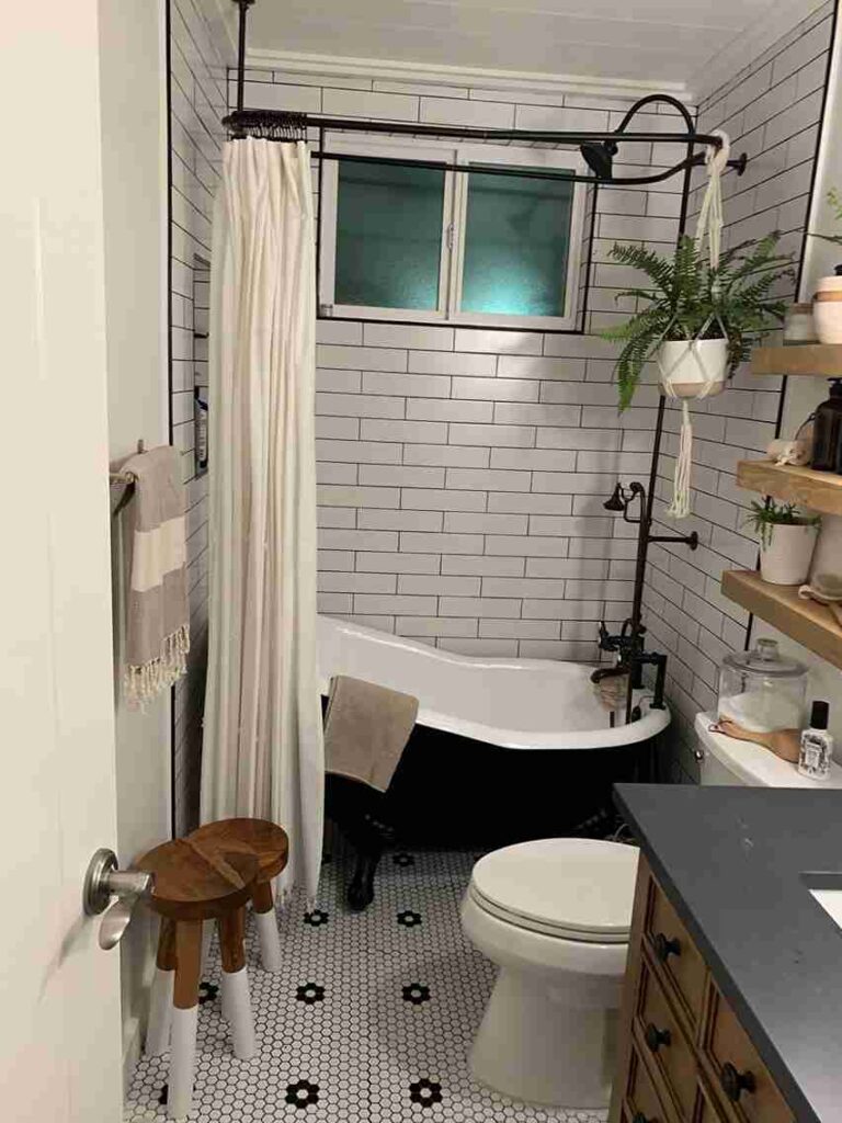 A clawfoot tub is classic, but it also does something practical in a small space: it lets you see the floor underneath. That little bit of visible floor can make the room feel less cramped.