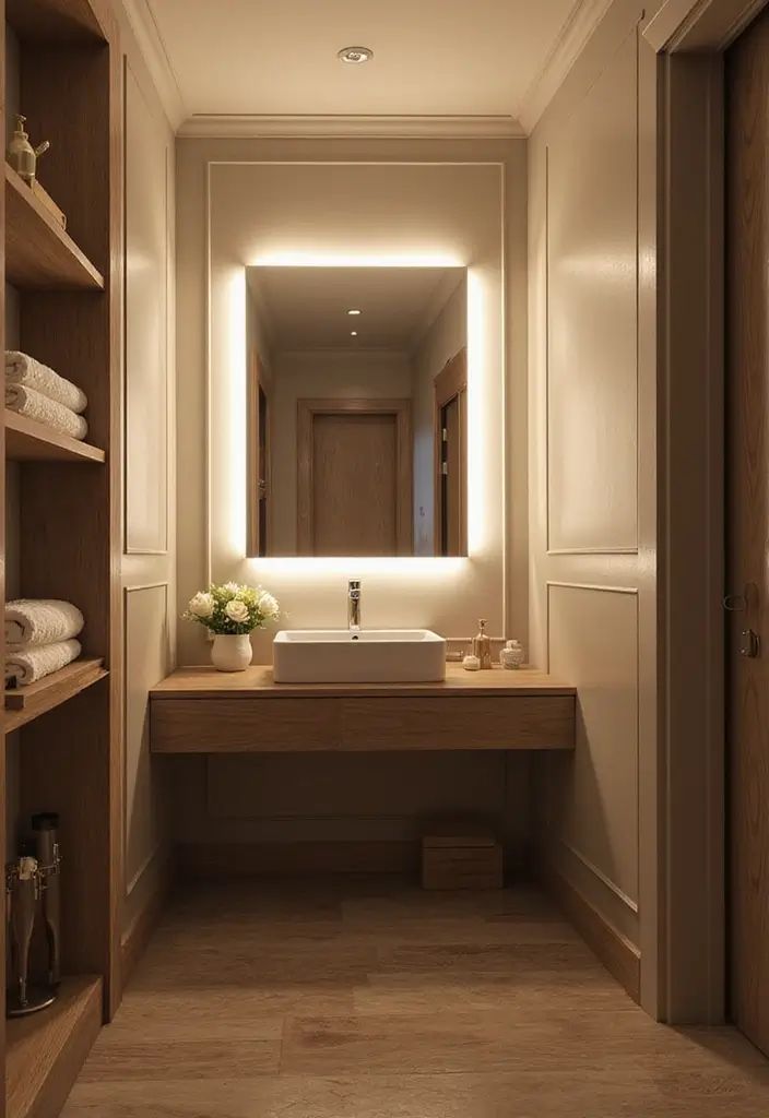 Mirrors are basically space multipliers. A larger mirror above the sink reflects light and gives the room depth, which helps your bathroom feel less boxed-in.