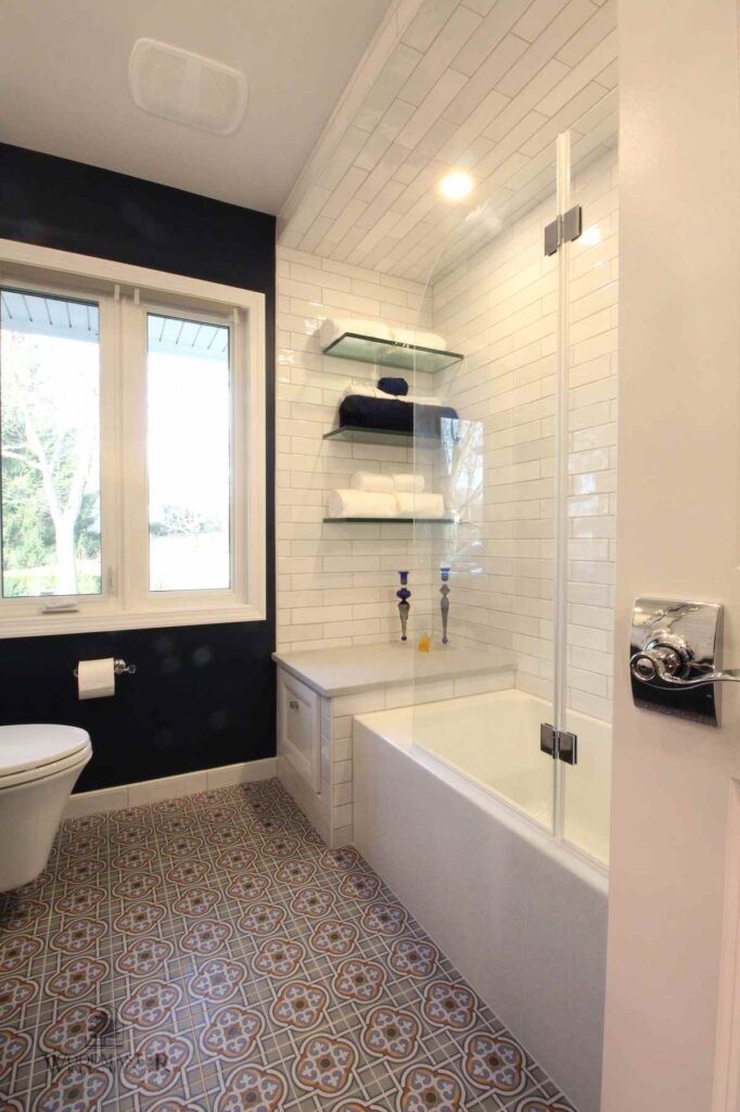 Bold tile can give a small bathroom personality fast, especially around the tub. A patterned accent wall or a strong contrast in the surround makes the tub area feel like a feature, not just a necessity.