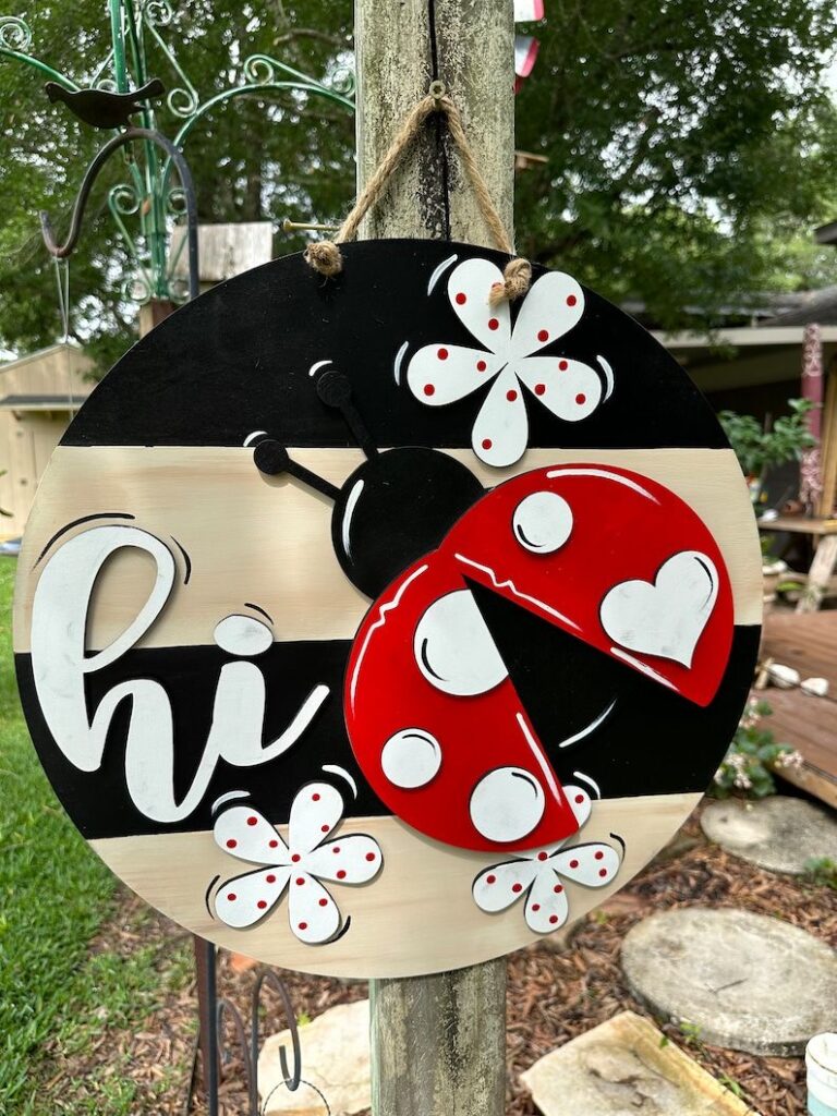 Ladybug door hangers can be crafted using a variety of materials, from painted wood to felt. Some designs feature a single ladybug perched on a vine, while others incorporate a series of ladybugs arranged in a pattern or a wreath. To enhance the garden vibe, you can add greenery, faux flowers, or even little bug-related accents like bees or butterflies. This door hanger is playful, lighthearted, and a fantastic way to add a fun pop of color to your front entryway.