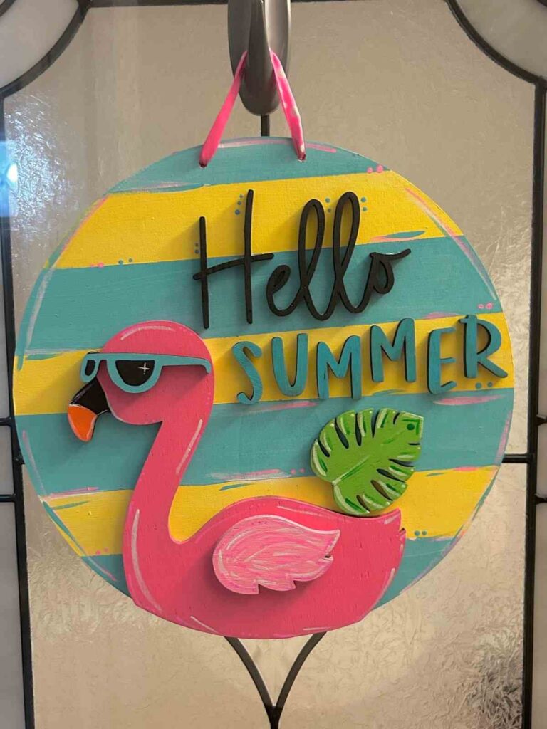 This door hanger fits perfectly with a fun, family-friendly aesthetic and is great for those who host summer barbecues or ice cream socials. It’s a great way to incorporate a bit of summer fun into your home’s décor, whether on a front door, back porch, or even near the garden.