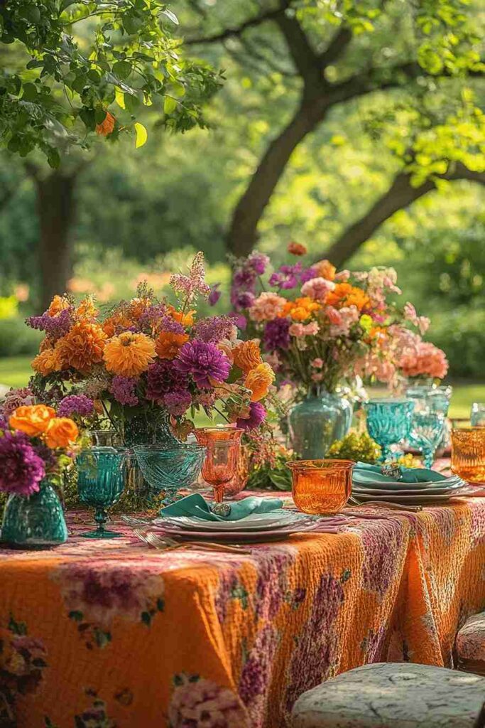 Start by choosing a bright, patterned tablecloth or table runner featuring colorful designs, such as floral or geometric prints. Incorporate colorful ceramic plates with rustic detailing, which will add texture and authenticity to the table. For the centerpiece, consider using colorful terracotta pots filled with vibrant flowers like marigolds or zinnias, which will instantly brighten up the setting.