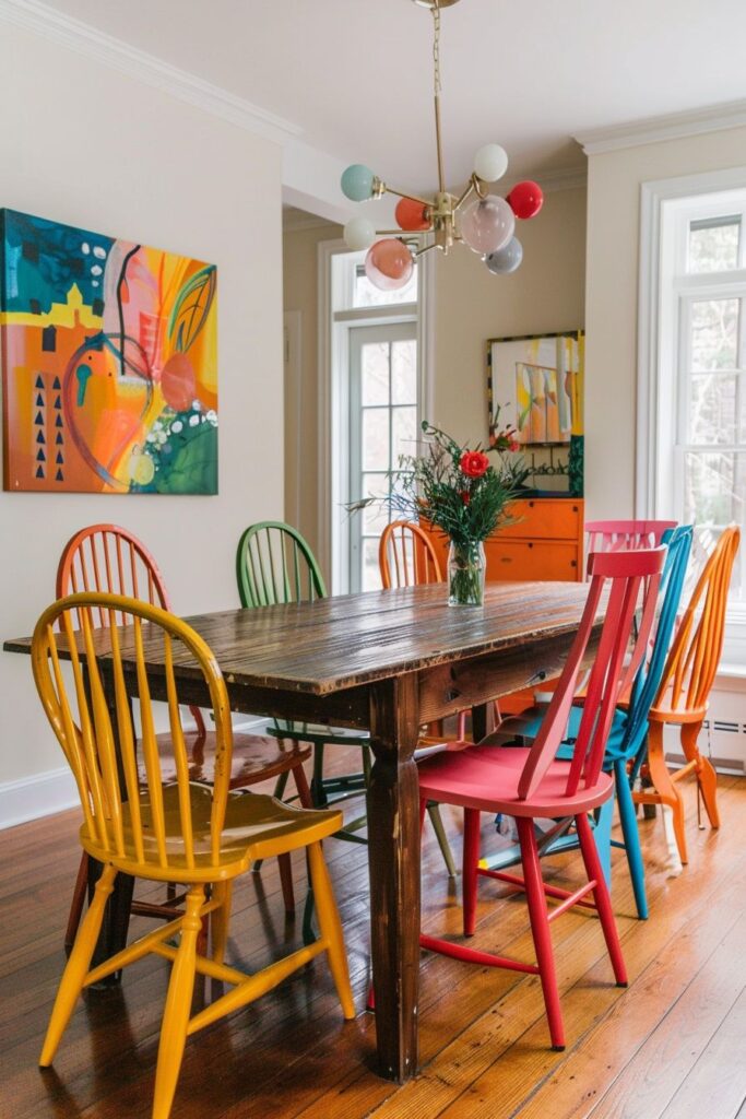 The round table, often made of chrome and laminate, is both stylish and functional. It’s a great spot for enjoying breakfast or dinner together. The vibrant colors of the chairs add a playful touch, making the dining area feel lively and welcoming.