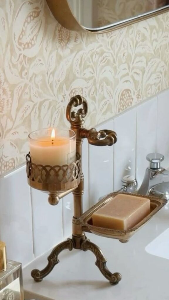 Antique accessories are where the magic really shows up. You can have a simple bathroom, but add a vintage soap dish, an ornate tray, a small vase, and suddenly it feels collected and charming.