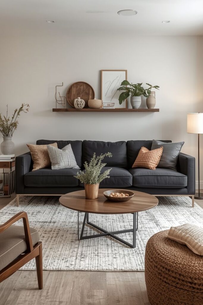 Avoid rugs that match your couch too closely. Slight contrast creates depth and prevents the room from looking flat.
