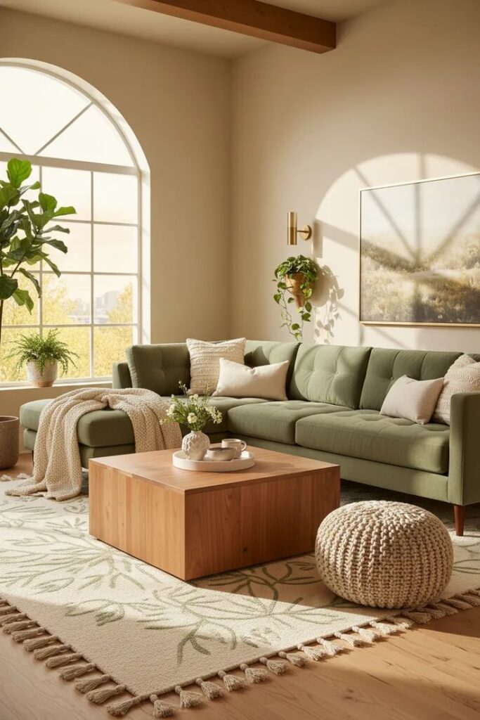 - Area rugs with subtle green tones